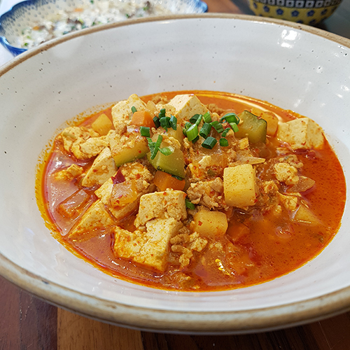 제철 둥근호박을 사용하여 부드럽게 끓인 짜글이찌개!, 밥에 쓱쓱 비벼먹기 좋습니다~